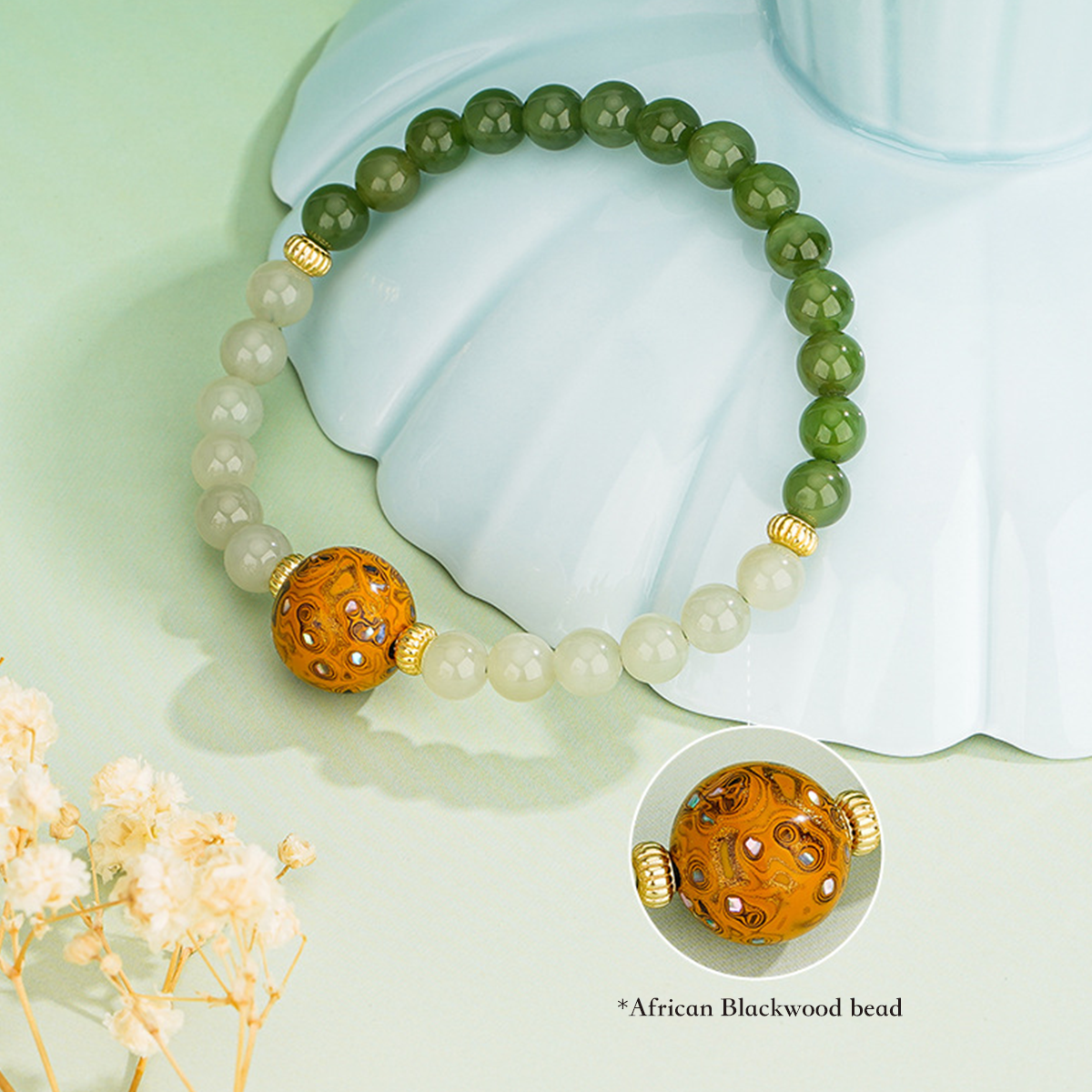 “Jade & Moonlight” evokes the two charming facets of love; “Gold & Rosewood” serves as a heartfelt link that holds deep affection together; “Twin Glow” embodies the wish: “Like two jades side by side, we shine together in love”. Every brush of the wrist against your skin is a happy mark of “walking beside you”—turning this bracelet into a “love letter on the wrist” for couples, a tangible token of love and companionship.